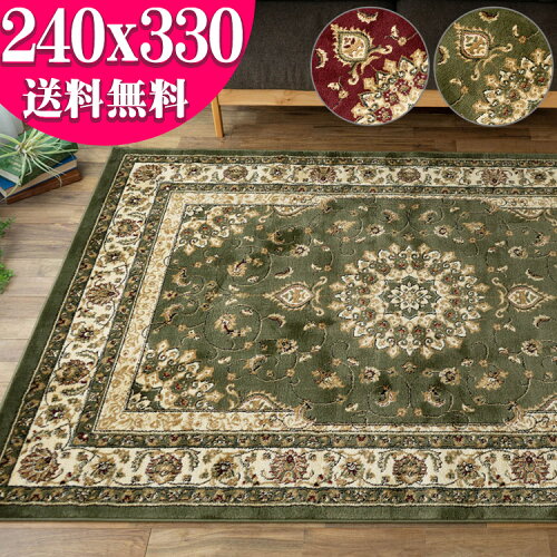 【お得な限定クーポンあり!】 ラグ 6畳 大きなサイズのお得な 絨毯! 240×330cm 約 6畳 用 じゅうたん グリーン レッド 赤 送料無料 トルコ絨毯 ウィルトン織 ヨーロピアン ラグ カーペット【楽天スーパーSALE】