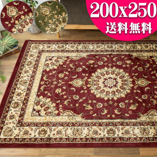 【お得な限定クーポンあり!】 超お得!ヨーロピアン ラグ リビング 200×250cm 約 3畳 大用 グリーン 緑 レッド 赤 長方形 送料無料 トルコ絨毯 ウィルトン織り じゅうたん カーペット【楽天スーパーSALE】