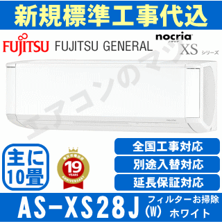 ★2000円クーポン配布中★【超お買い得な工事費込セット(商品+新規標準工事)】【送料無料(エリア限定)】富士通ゼネラル■AS-XS28J-W■ 2019年モデル【-nocria-Xシリーズ】[主に10畳用][240]